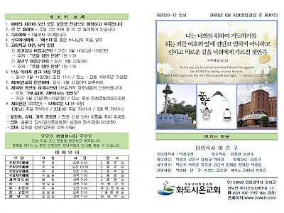 2020년 8월 9일 화도시온교회 주보