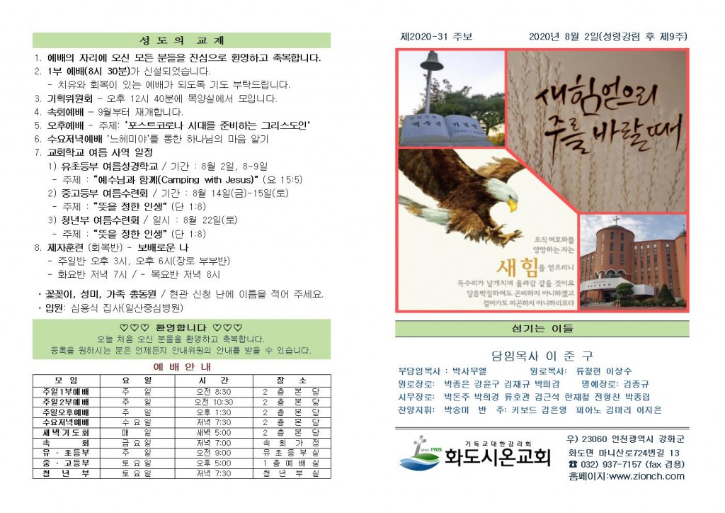 2020년 8월 23일 주일오후예배(코로나 가정예배)