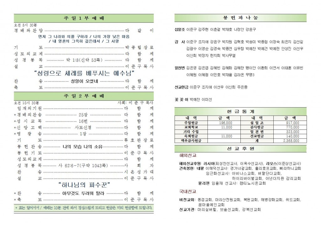 2025년 10월 26일 교회소식