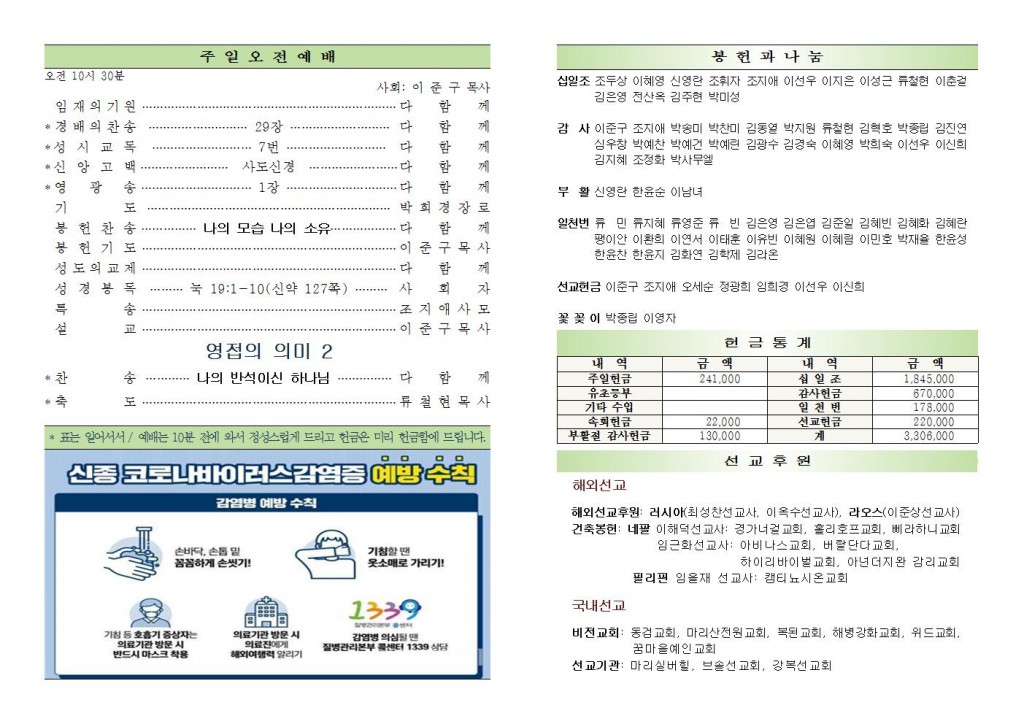 2020년 5월 10일 화도시온교회 주보
