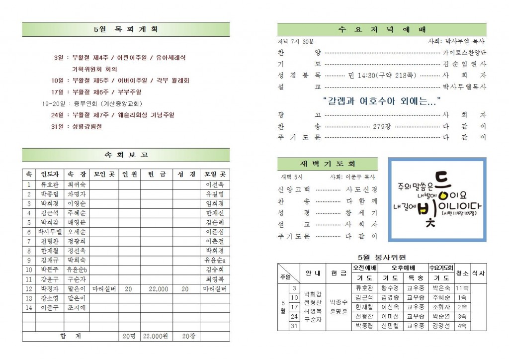 2020년 5월 3일 화도시온교회 주보