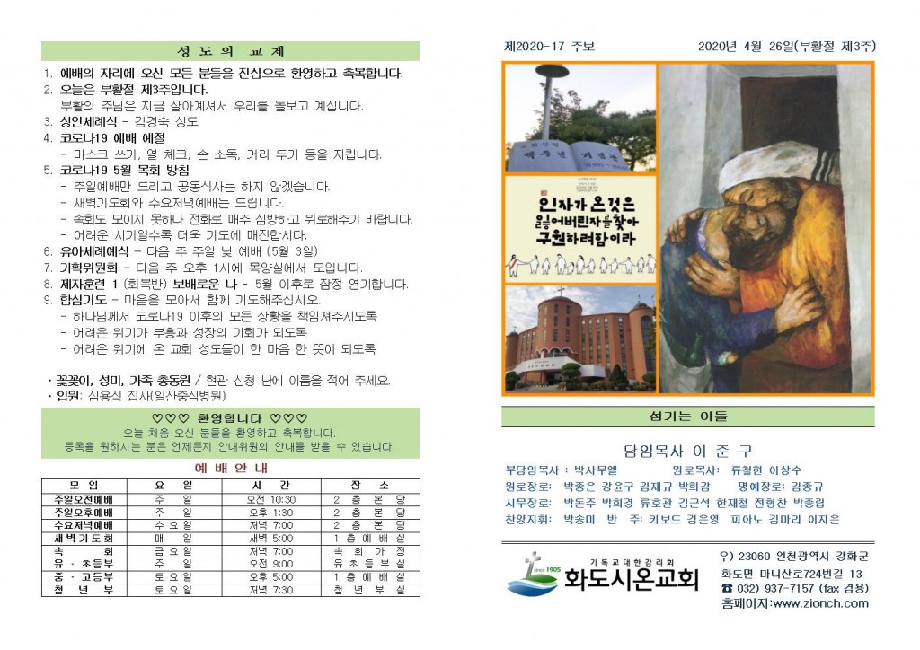 2020년 5월 17일 화도시온교회 주보