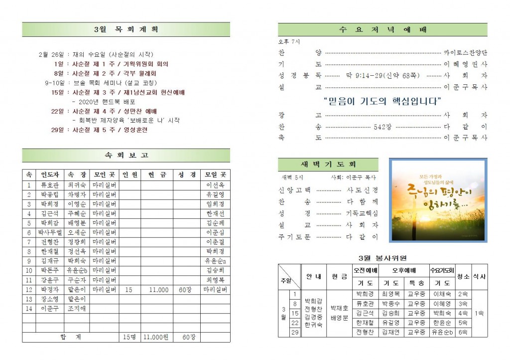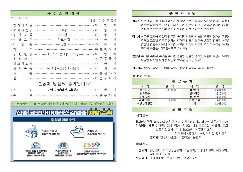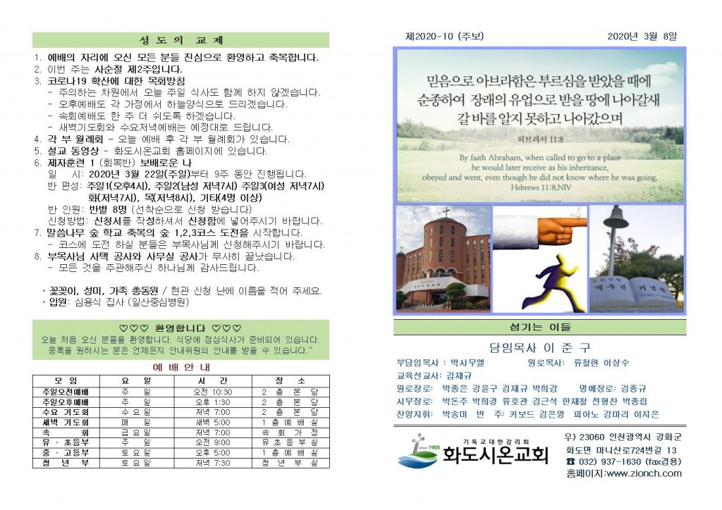 2020년 3월 1일 화도시온교회 주보