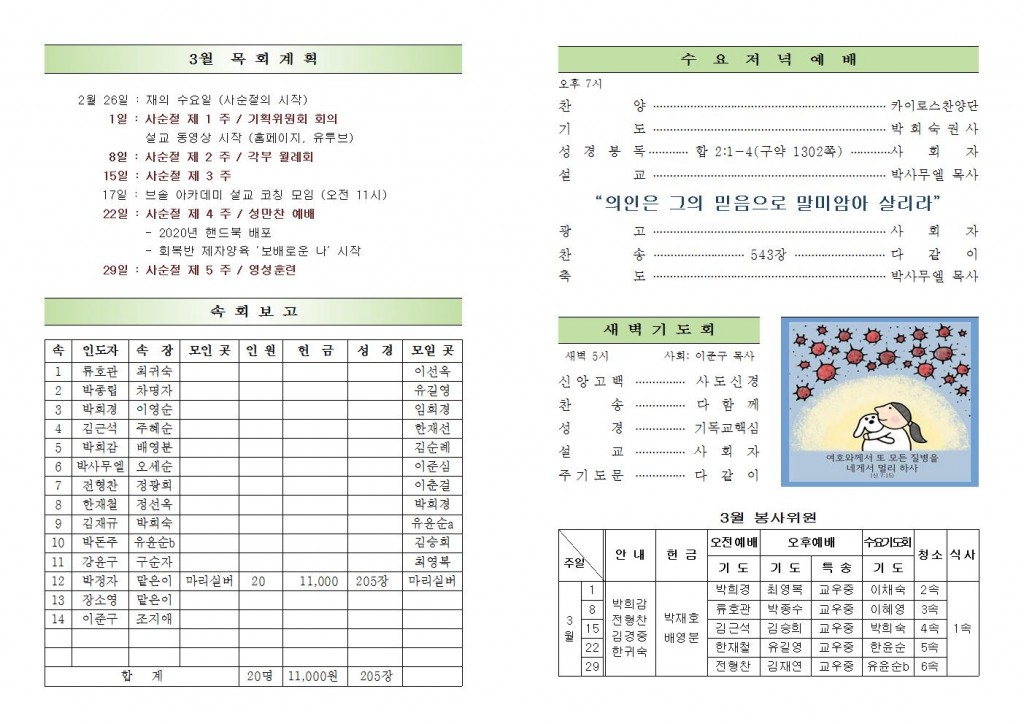2020년 3월 1일 화도시온교회 주보