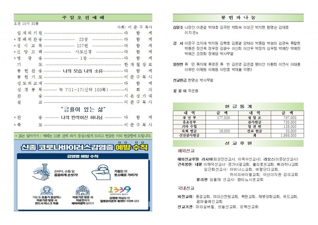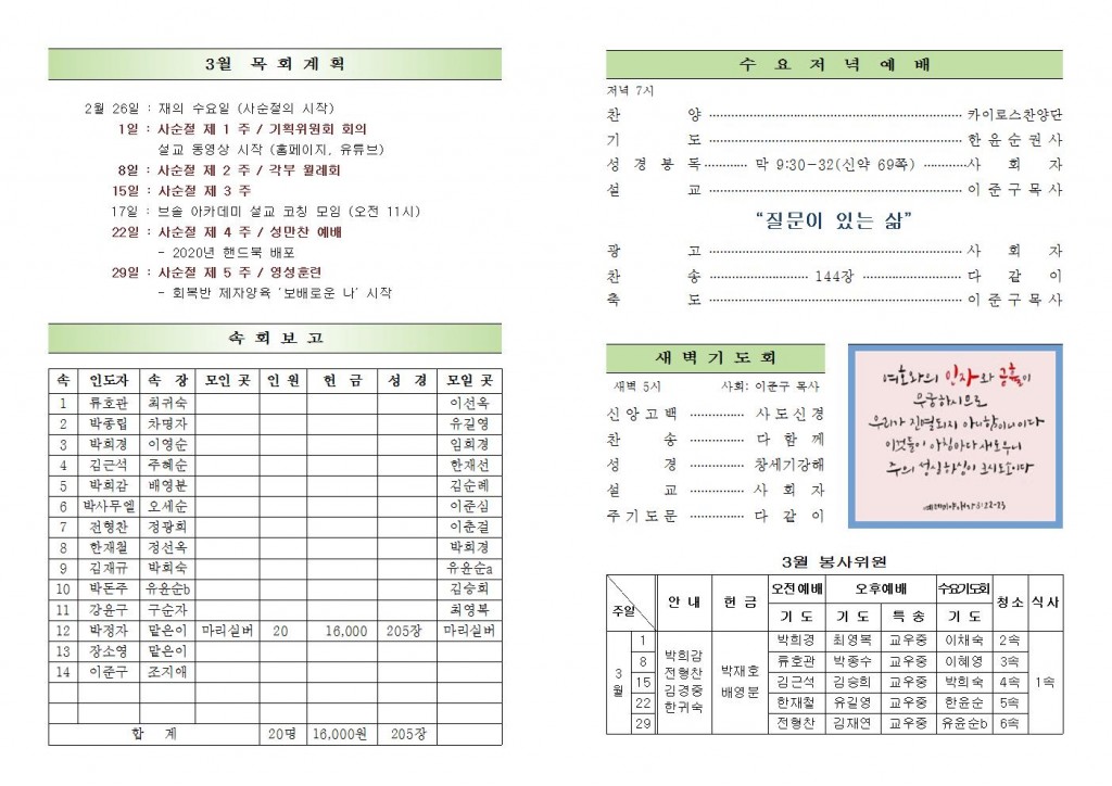 2020년 3월 1일 화도시온교회 주보
