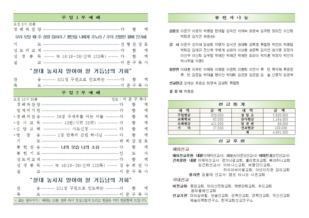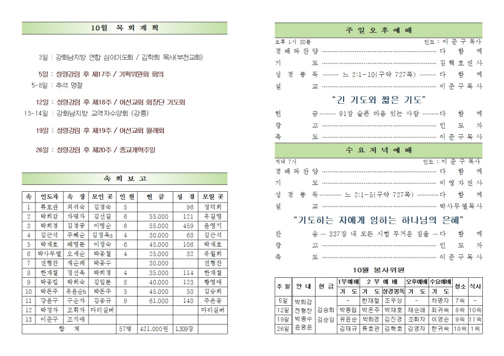 2025년 10월 26일 교회소식