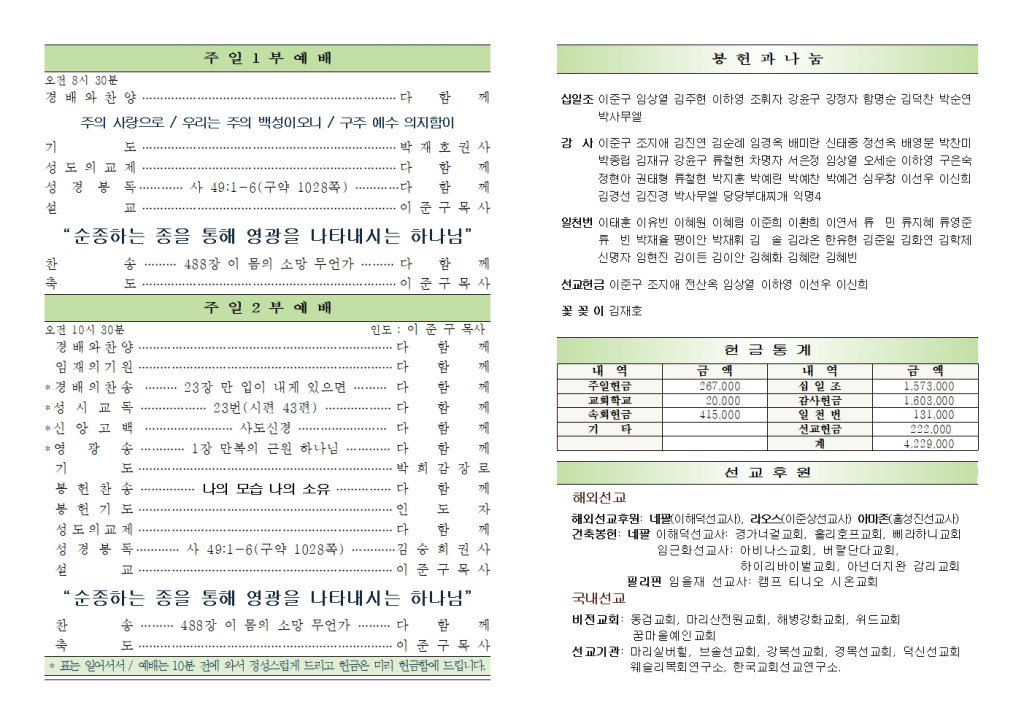 2026년 1월 4일 화도시온교회 주보
