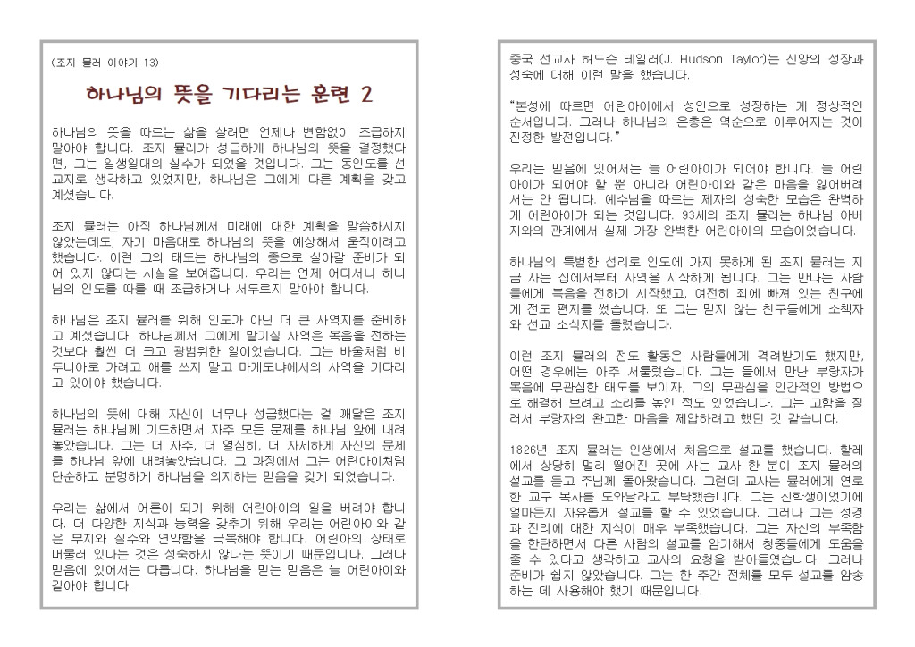 (조지 뮬러 이야기 13) 하나님의 뜻을 기다리는 훈련 2