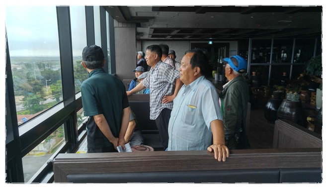 해송쌈밥집 4층에서 인천국제공항을 보고 있는 일행