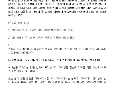 (성령강림 후 19-1) 새 언약의 백성 (설교문)
