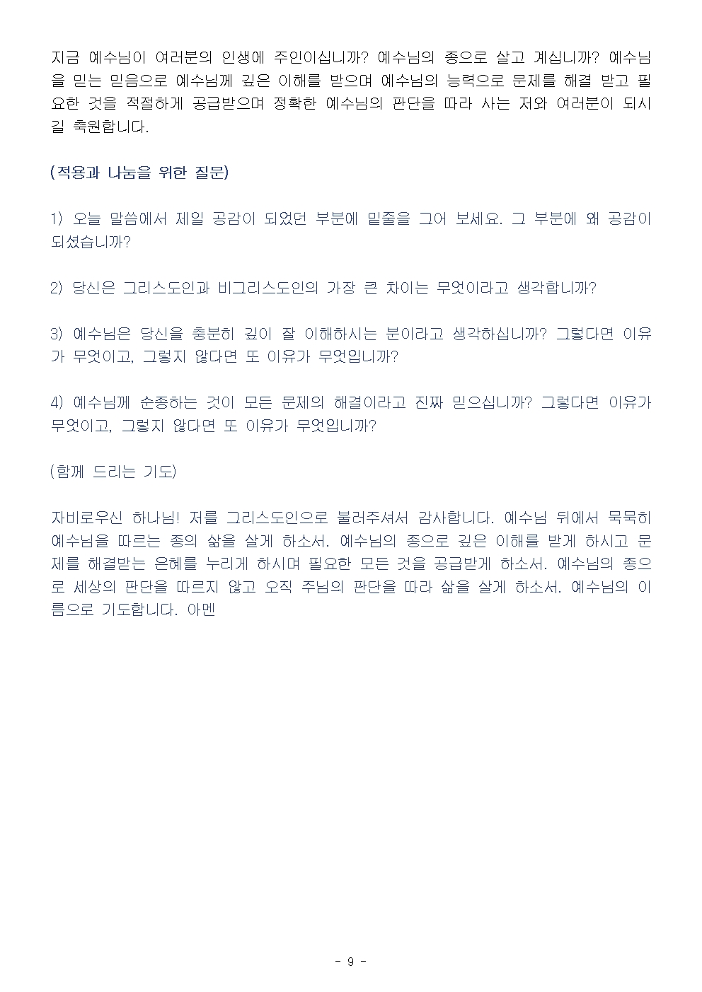 (주현 후 1-1) 예수님께서 다스리시고 인도하시는 삶 (설교문)