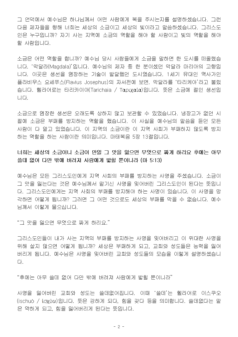 (주현 후 5-1) 우리는 이 지역의 소금입니다 (설교문)