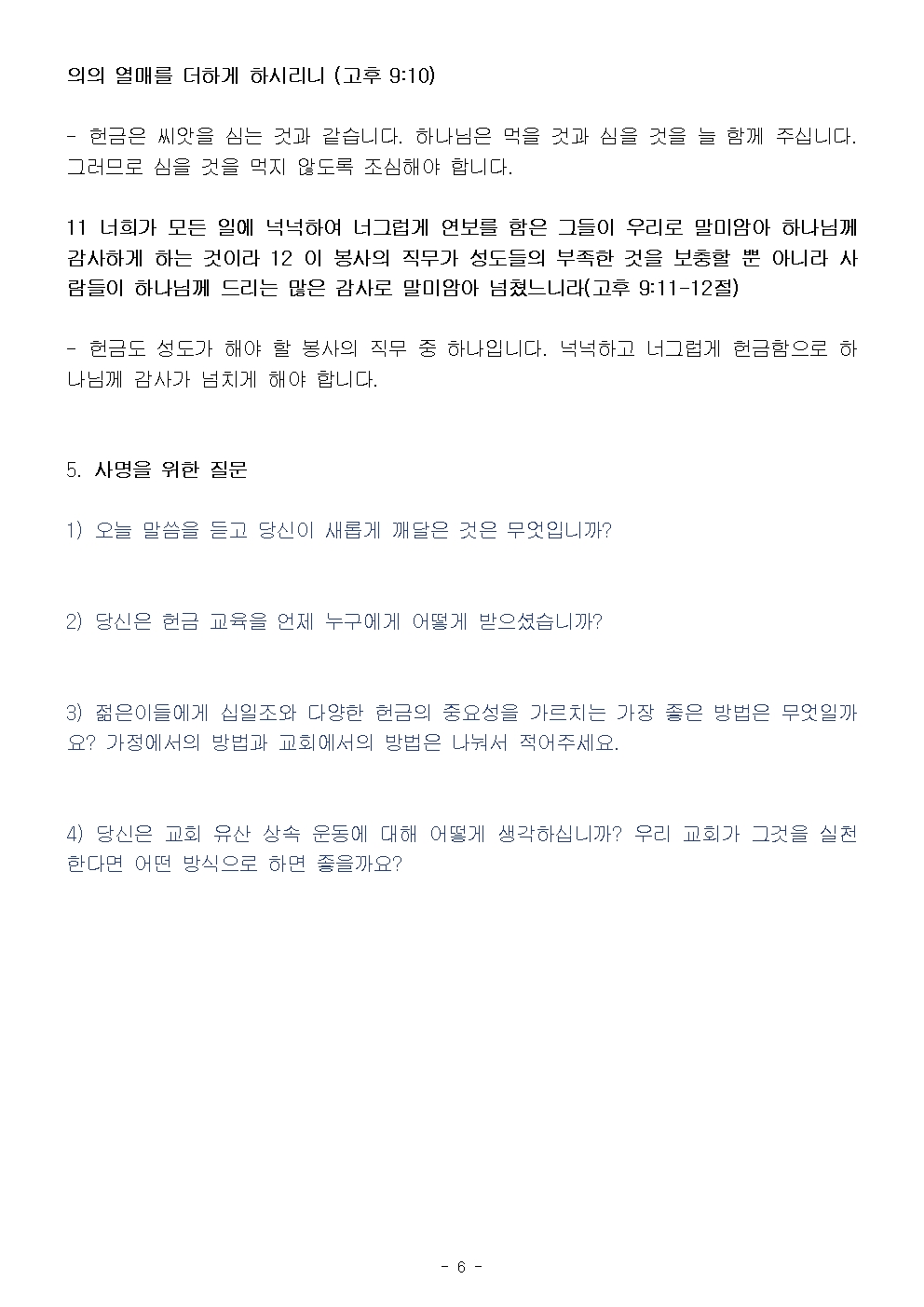 (2026 임원교육 3) 하나님의 뜻대로 헌금을 드리고 쓰는 교회 공동체 (설교문)