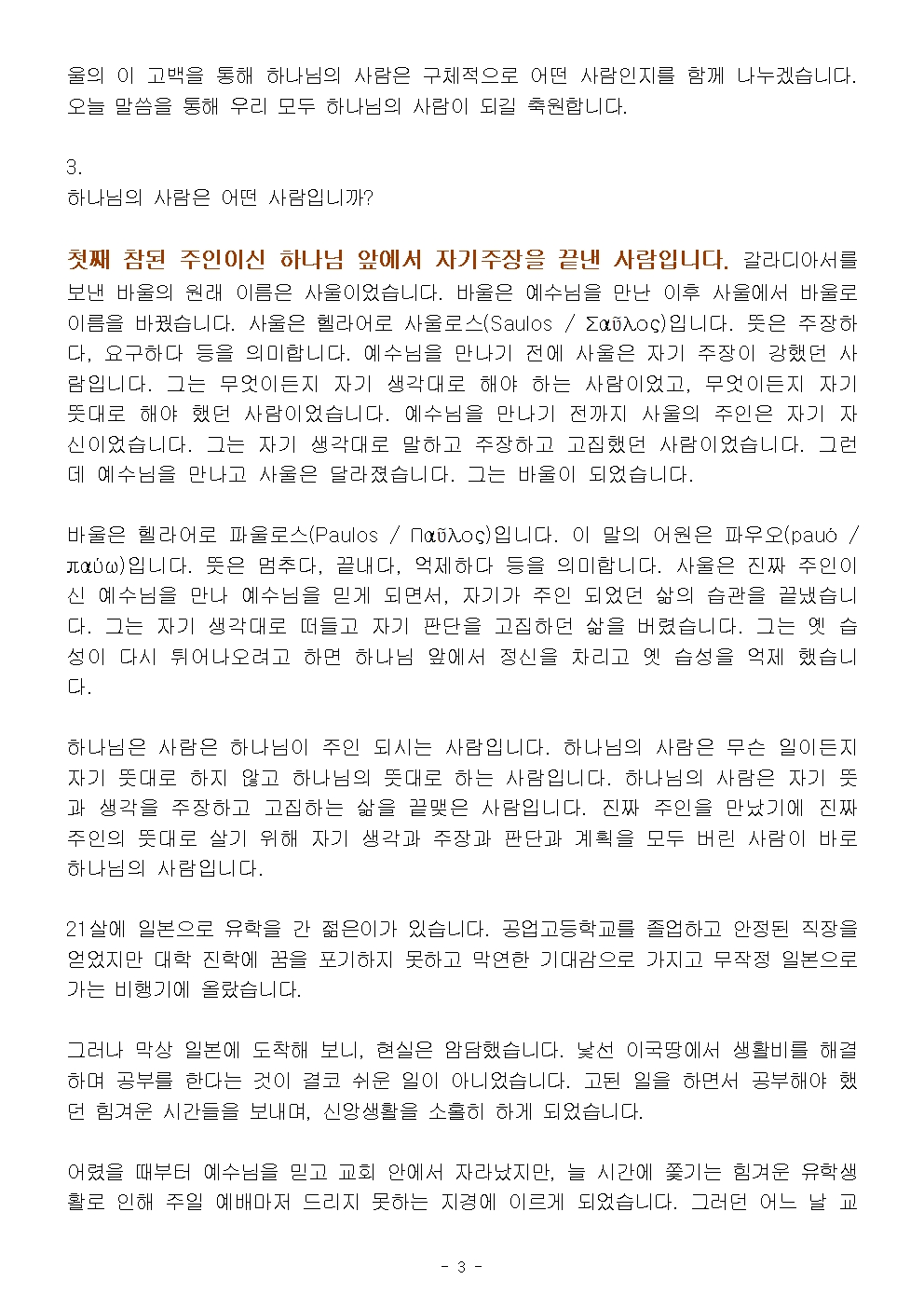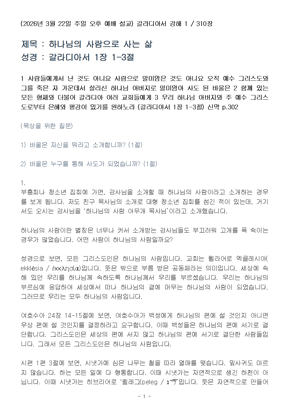 (갈라디아서 강해 1) 하나님의 사람으로 사는 삶 (설교문)