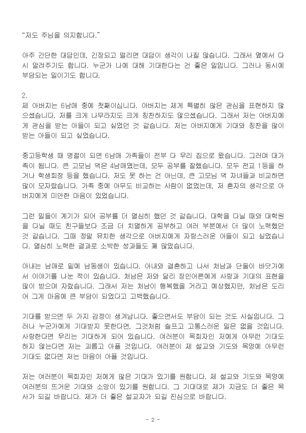 (성령강림 후 10-1) 우리를 향한 하나님의 기대와 소망 (설교문)