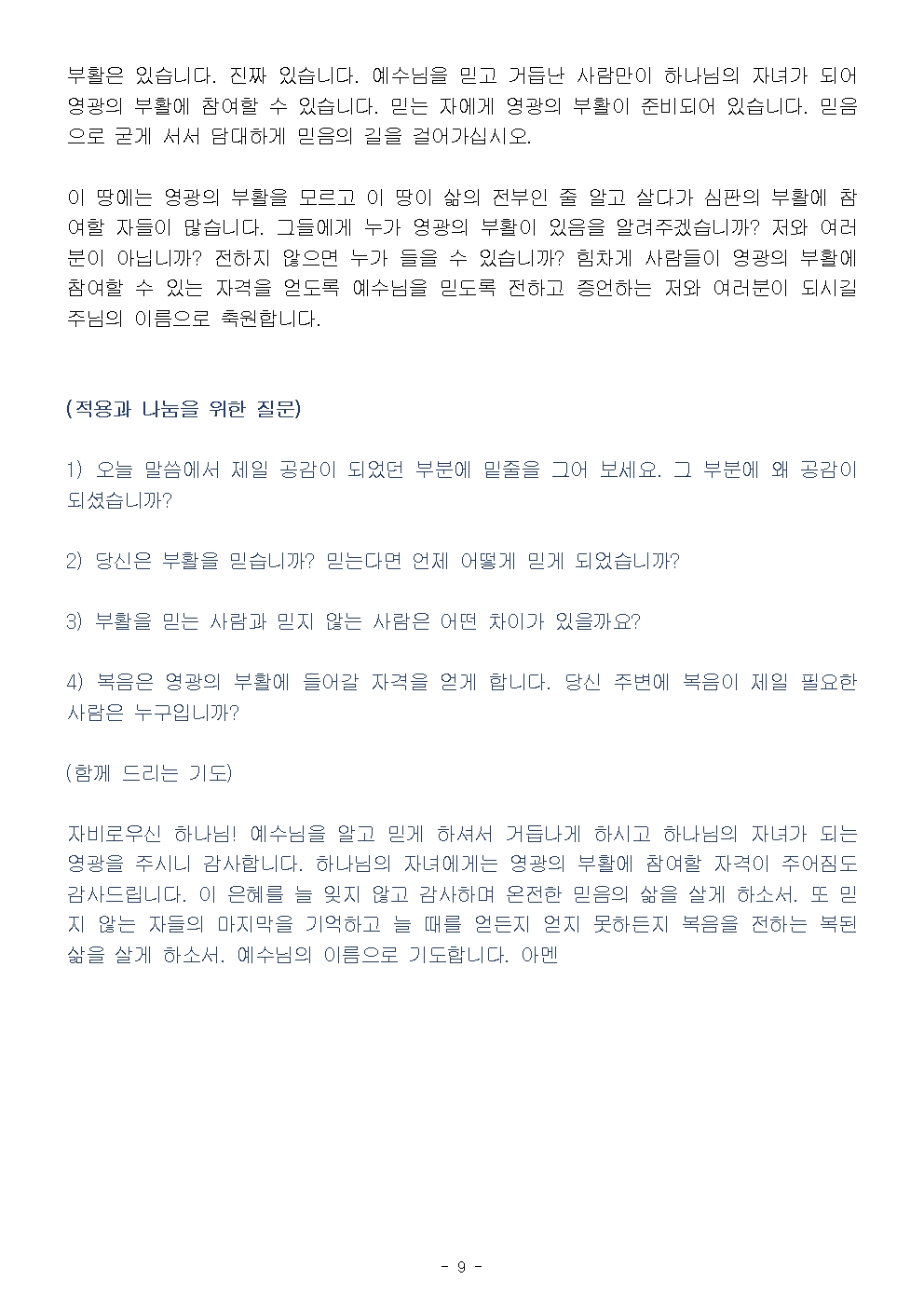(성령강림 후 22-1) 영광의 부활을 바라보는 사람들 (설교문)