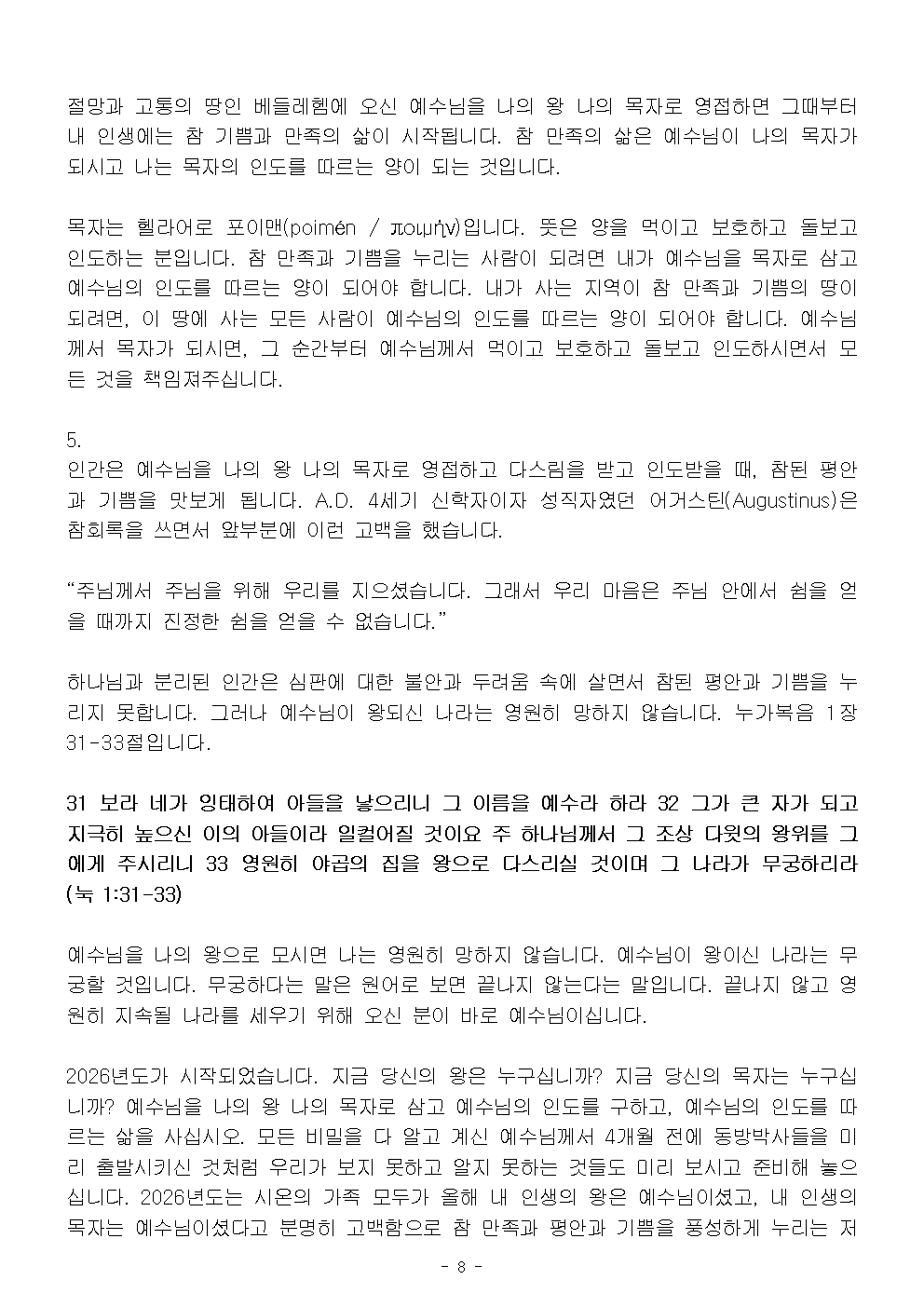 (주현 후 1-1) 예수님께서 다스리시고 인도하시는 삶 (설교문)