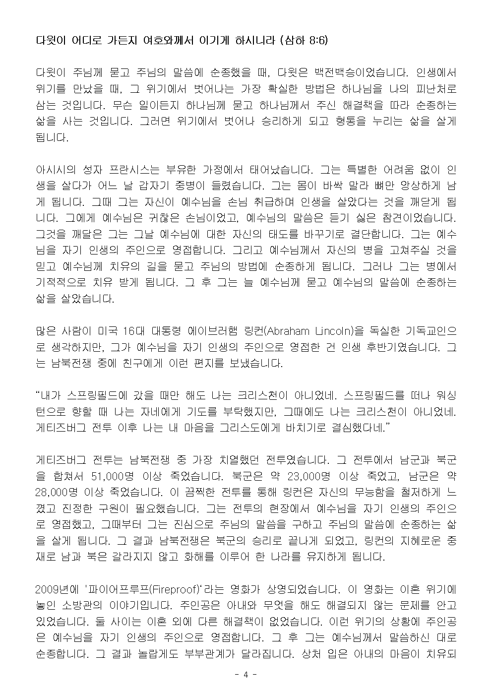 (부활절 2-1) 인생의 위기에서 탈출하는 믿음의 원칙 (설교문)