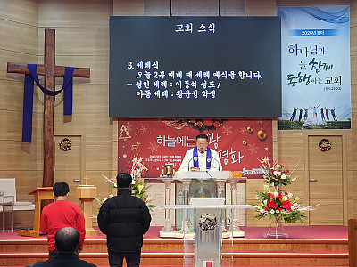 * 2024년 12월 21일 2부예배 때, 이동석 성도과 황윤성 학생이 세례를 받았습니다.- 이동석 성도님은 세례식 후 입교식도 진행하였습니다.- 오늘 세례받으신 임상렬 성도님과 …