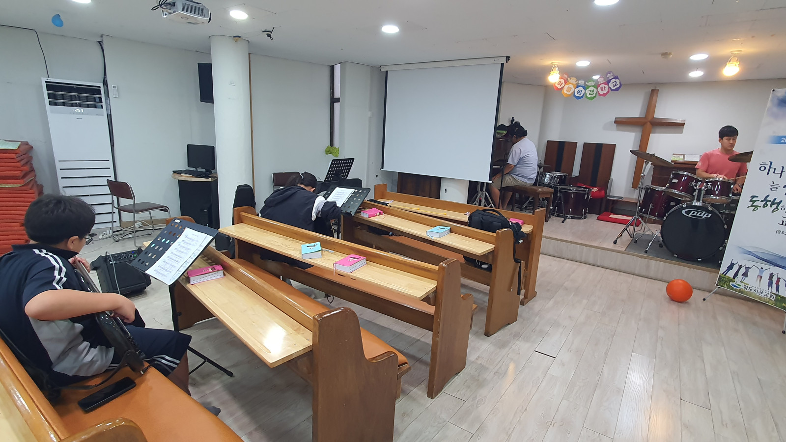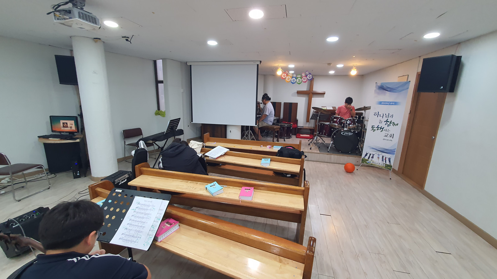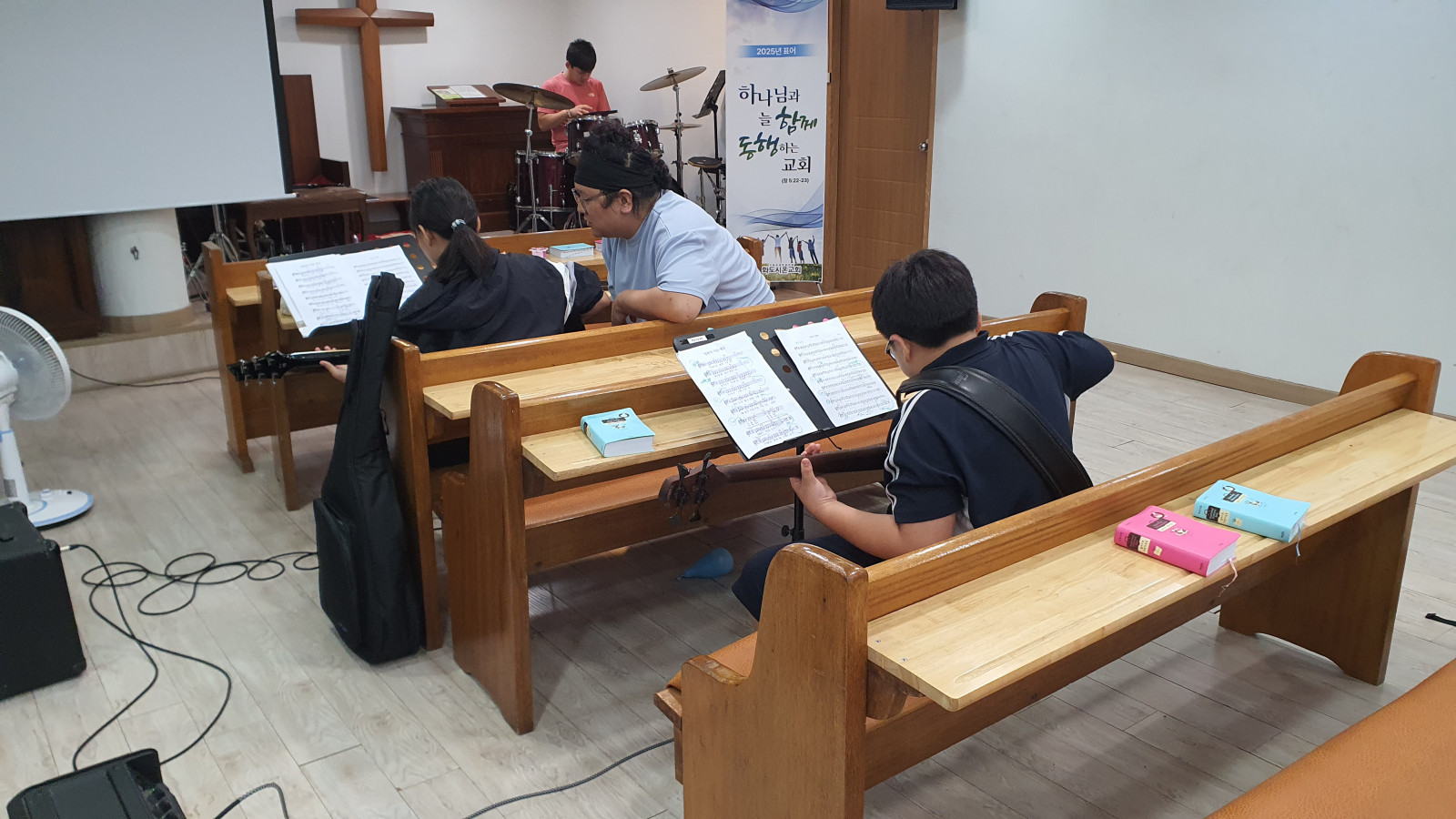 * 오늘은 2명의 학생들이 예배음악학교에 참여하여 드럼과 베이스기타와 일렉기타를 배웠습니다.