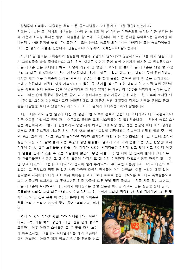2025년 3월 아마존 홍성진 선교사님 선교편지