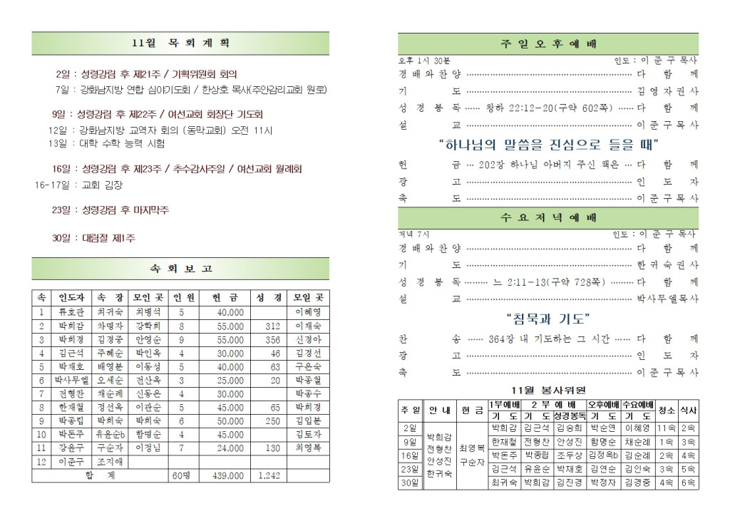 2025년 11월 2일 화도시온교회 주보