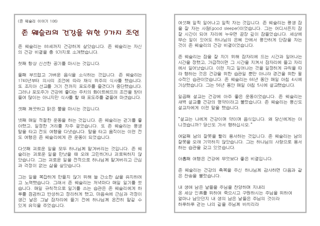 (존 웨슬리 이야기 106) 존 웨슬리의 건강을 위한 9가지 조언
