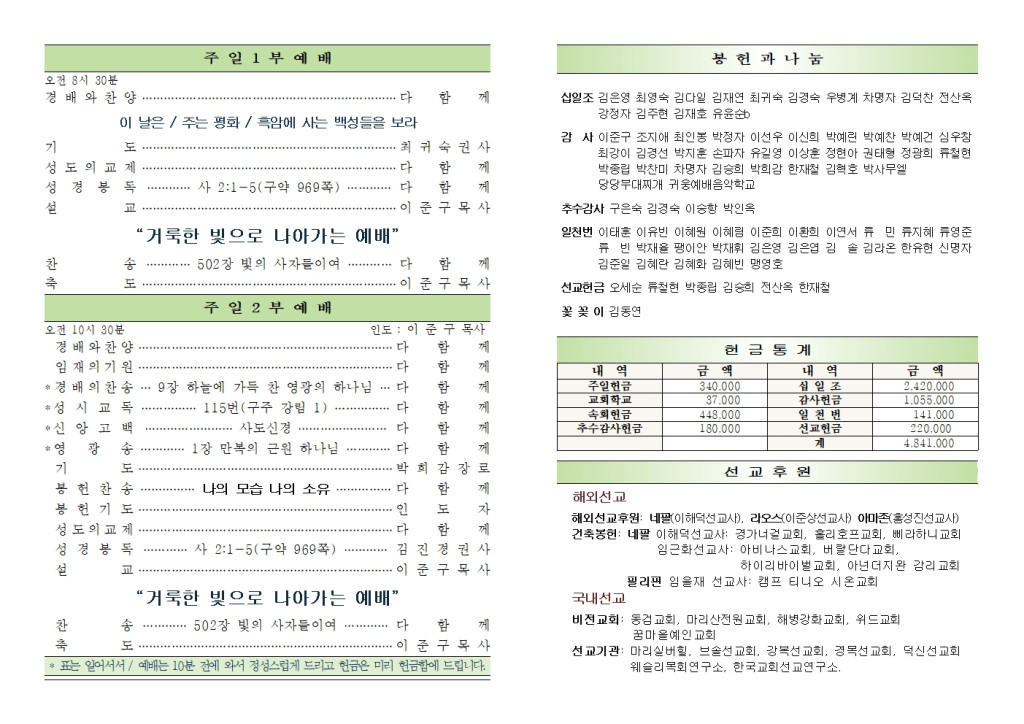 2025년 10월 19일 화도시온교회 주보