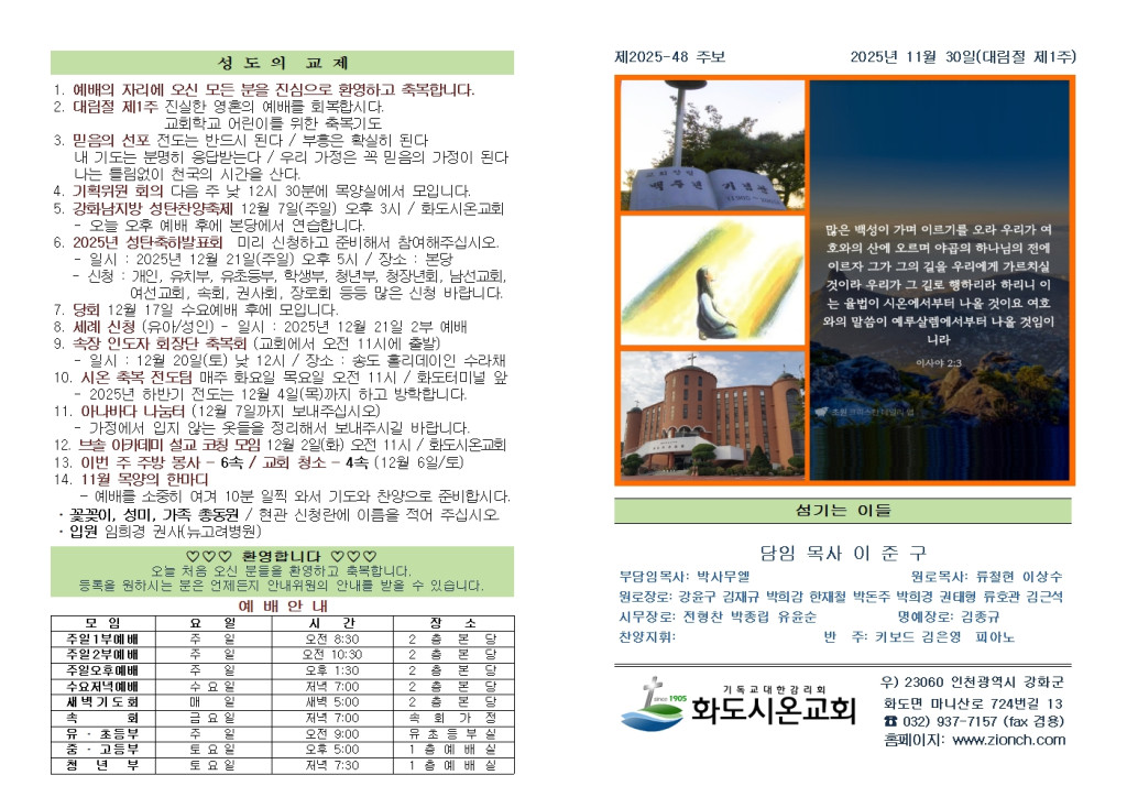 2025년 11월 30일 화도시온교회 주보