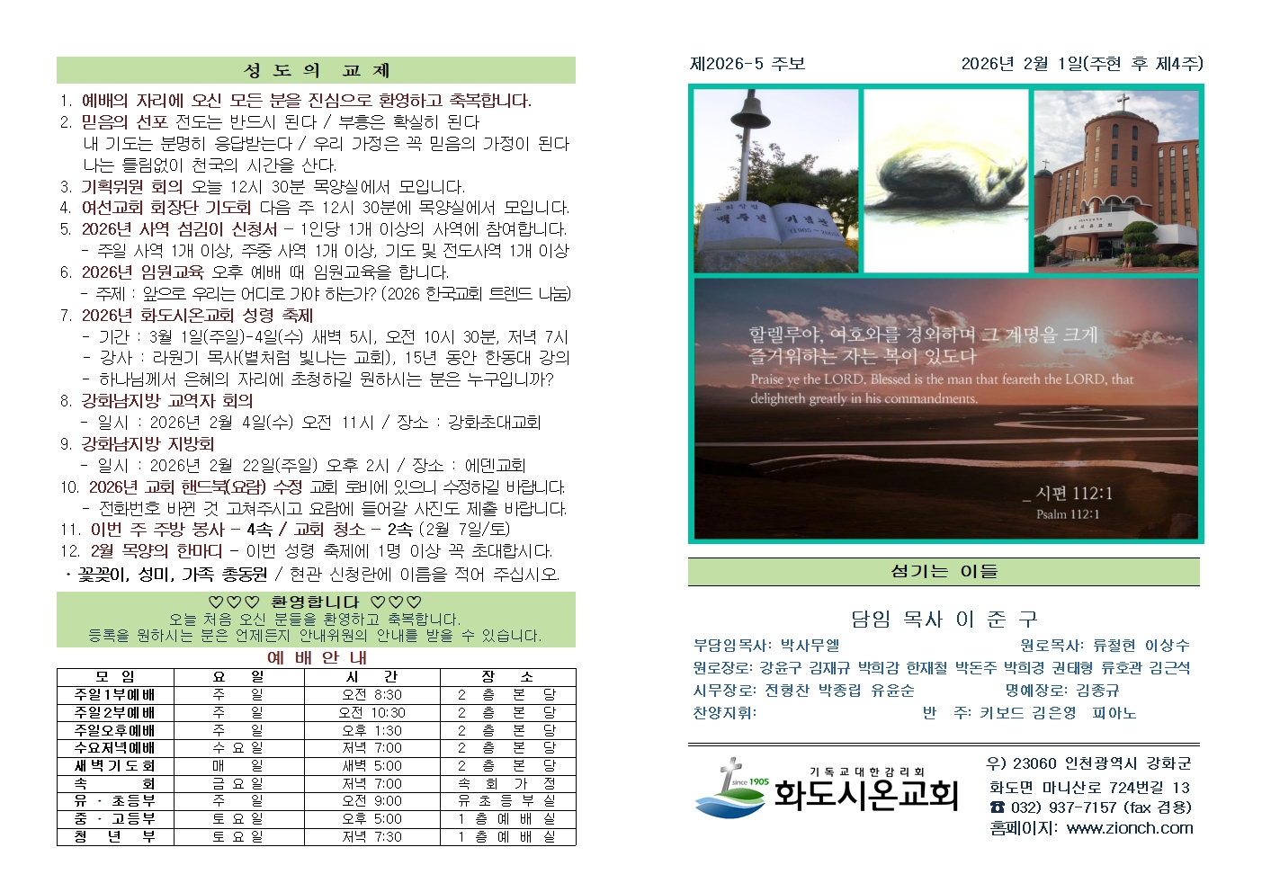 2026년 2월 1일 화도시온교회 주보