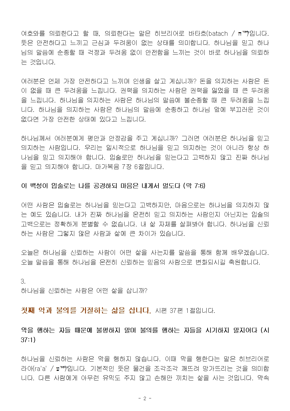 (성령강림 후 17-1) 하나님을 신뢰하는 삶 (설교문)
