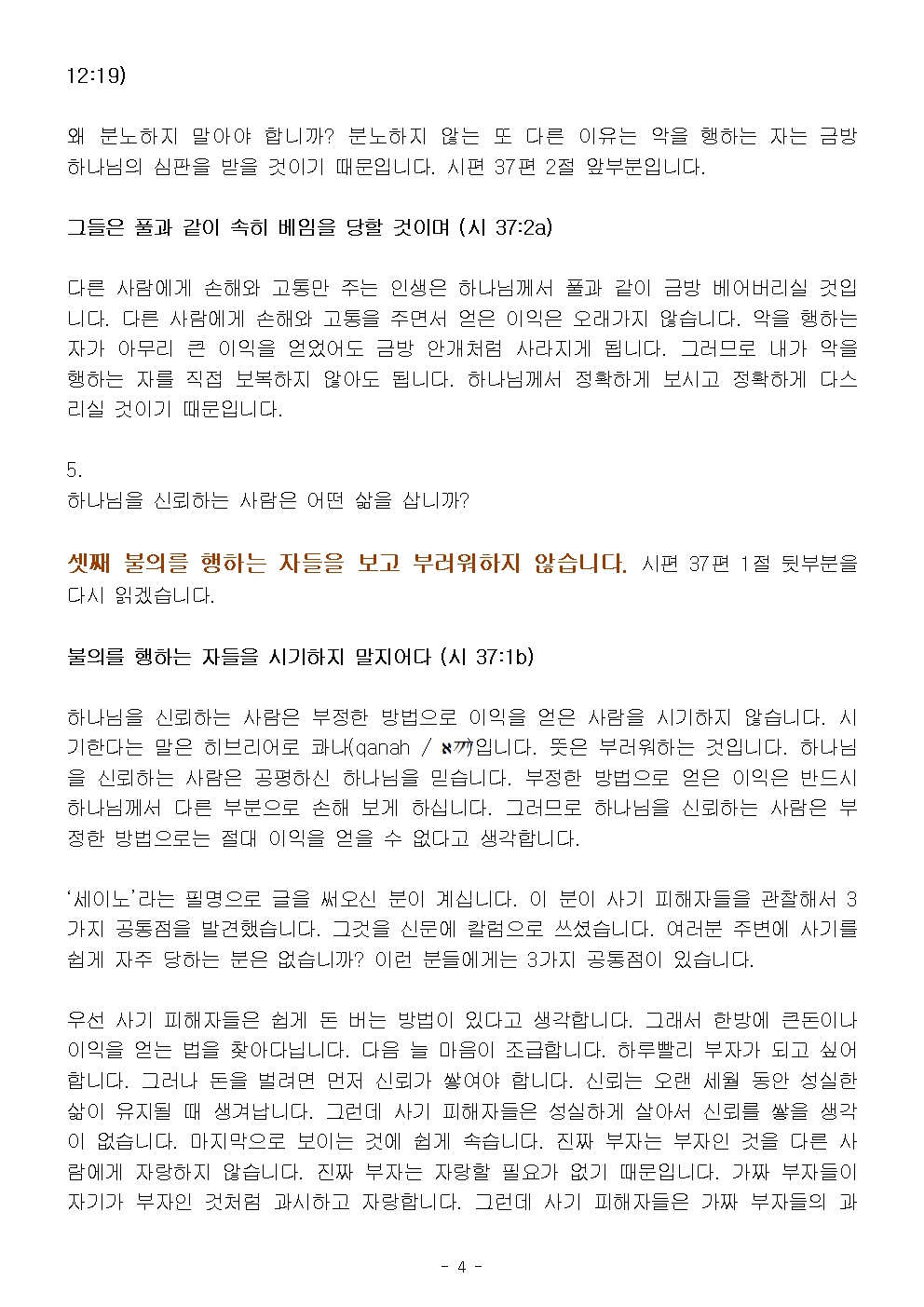 (성령강림 후 13-1) 하나님을 아는 사람의 행복 (설교문)