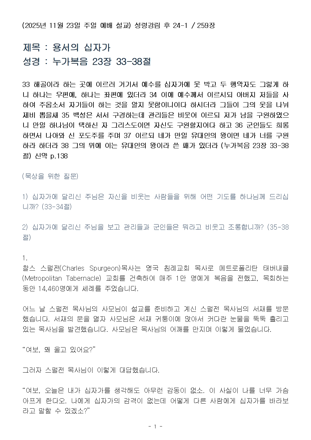 (성령강림 후 24-1) 용서의 십자가 (설교문)