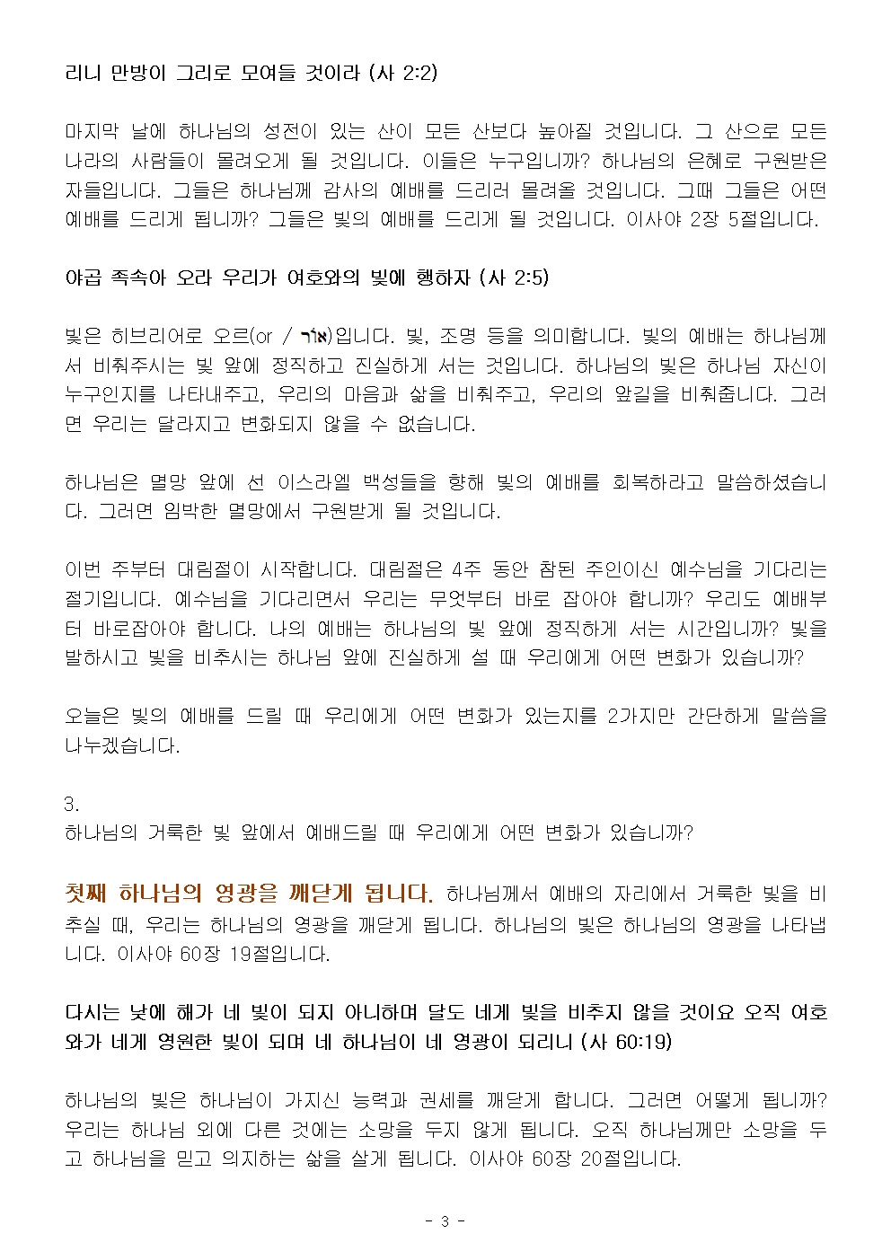 (대림절 1-1) 거룩한 빛으로 나아가는 예배 (설교문)