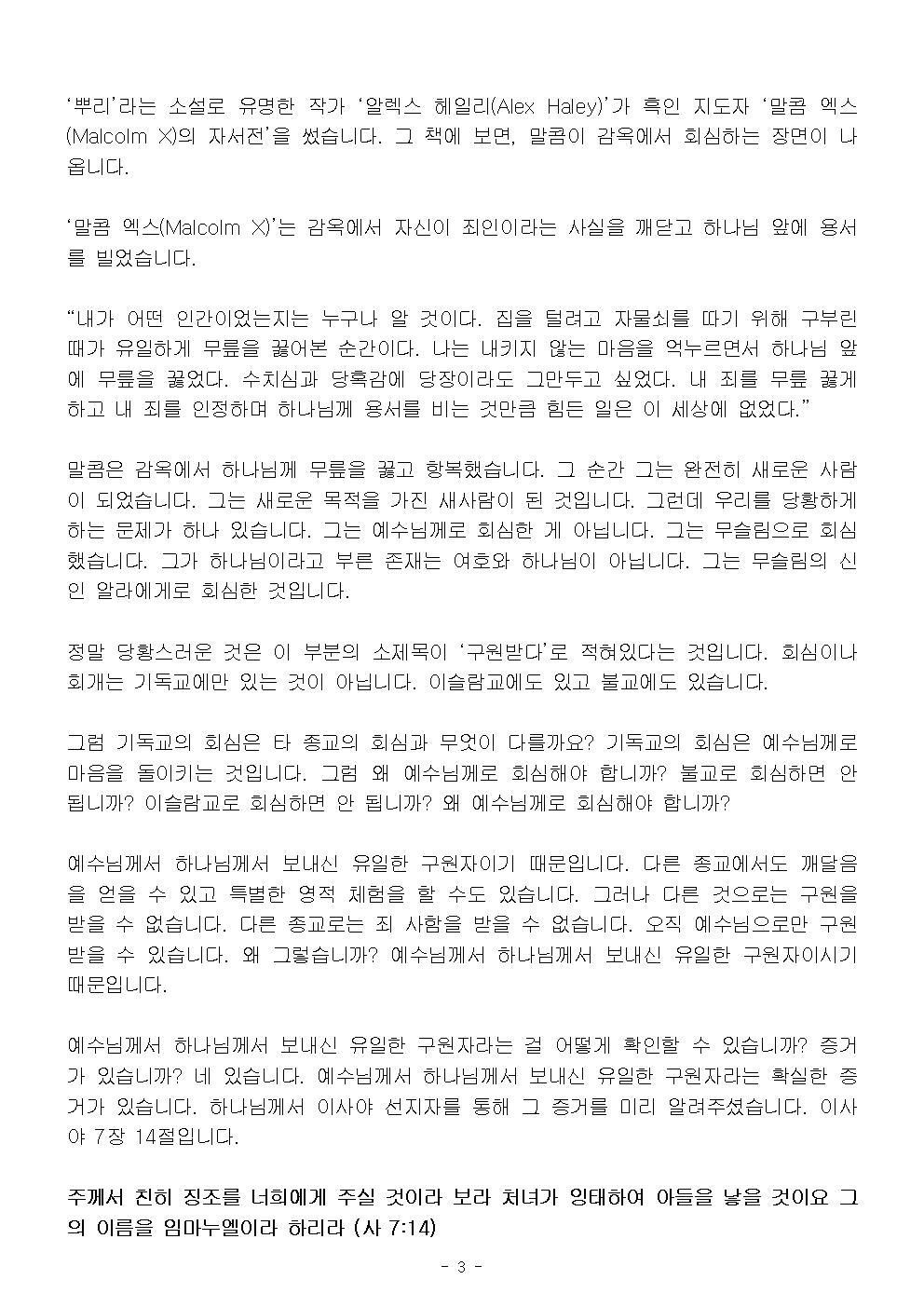 (대림절 3-1) 내 믿음의 결론 예수 그리스도 (설교문)