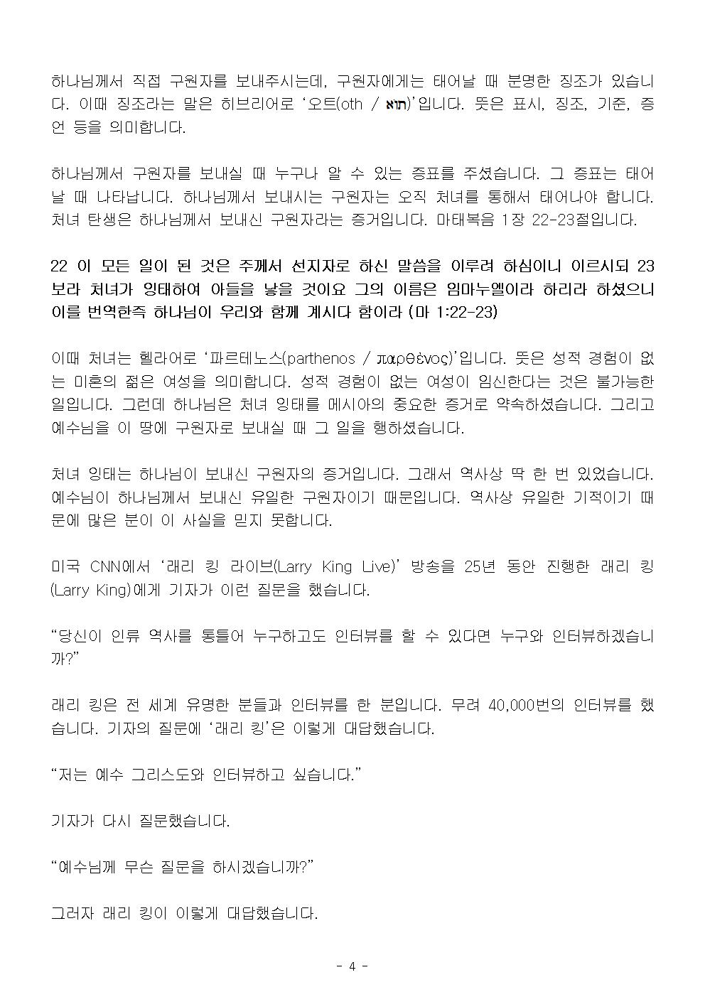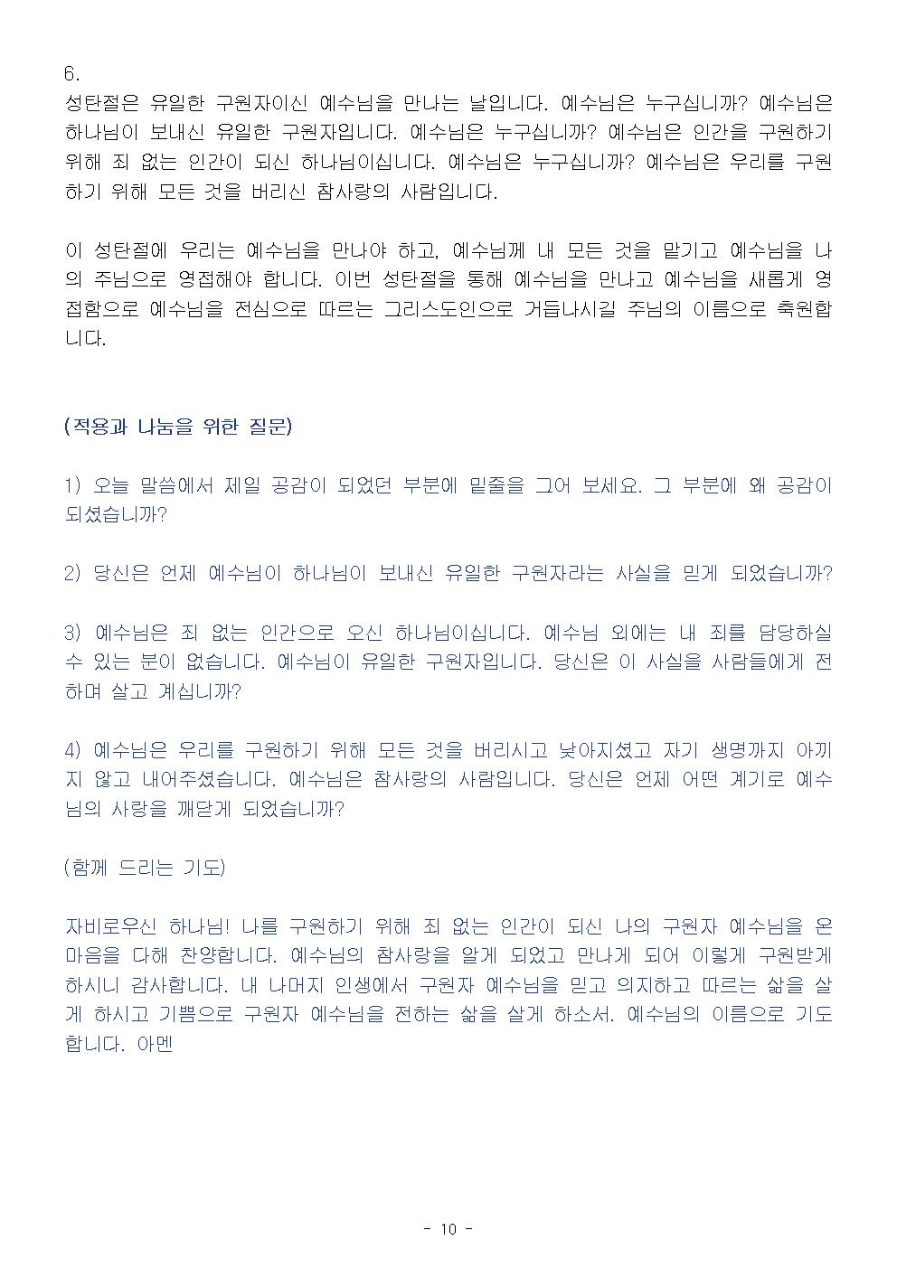 (성탄절) 나의 구원자 예수 그리스도 (설교문)