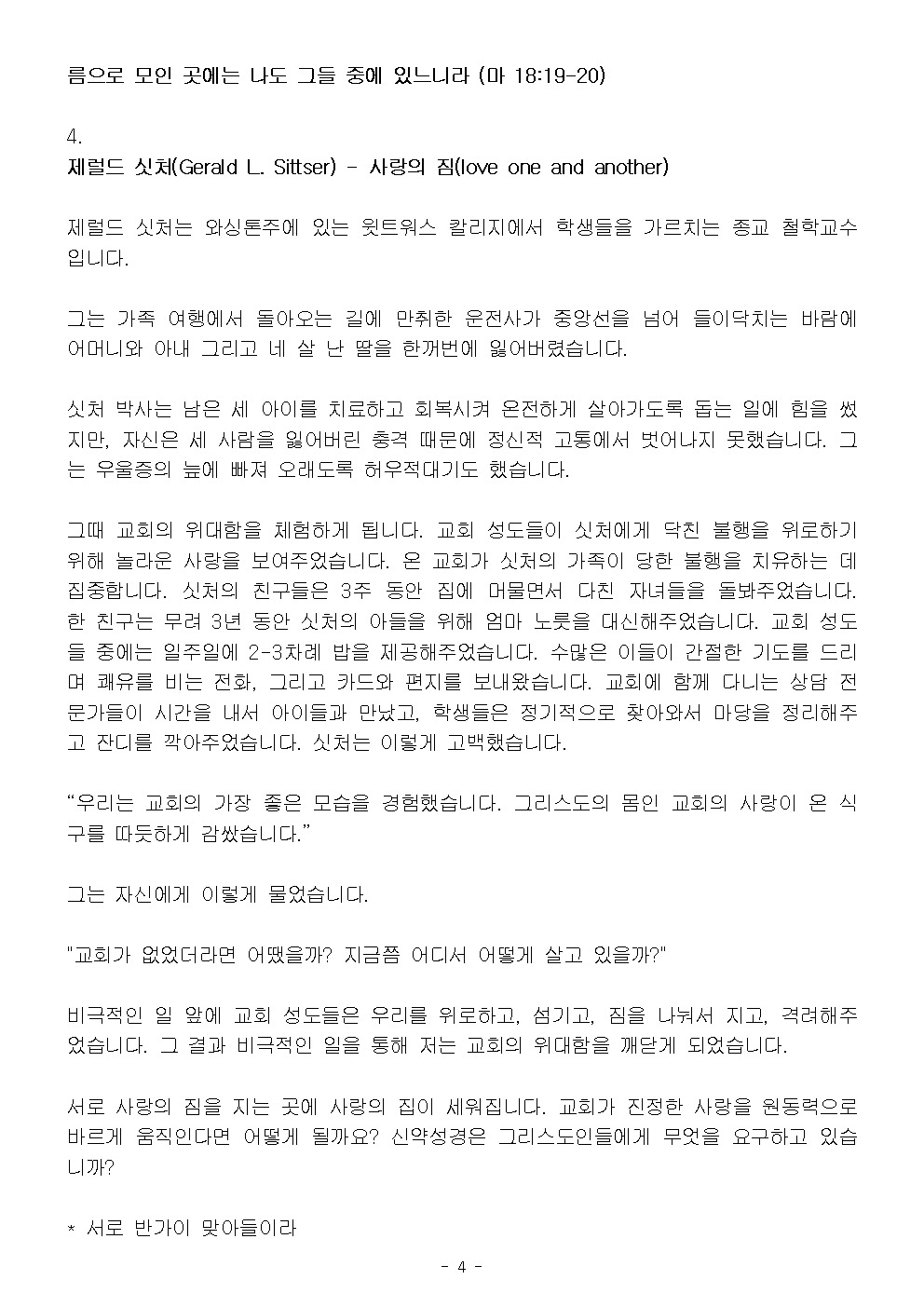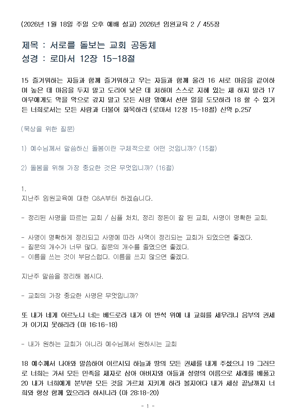 (2026 임원교육 2) 서로를 돌보는 교회 공동체 (설교문)