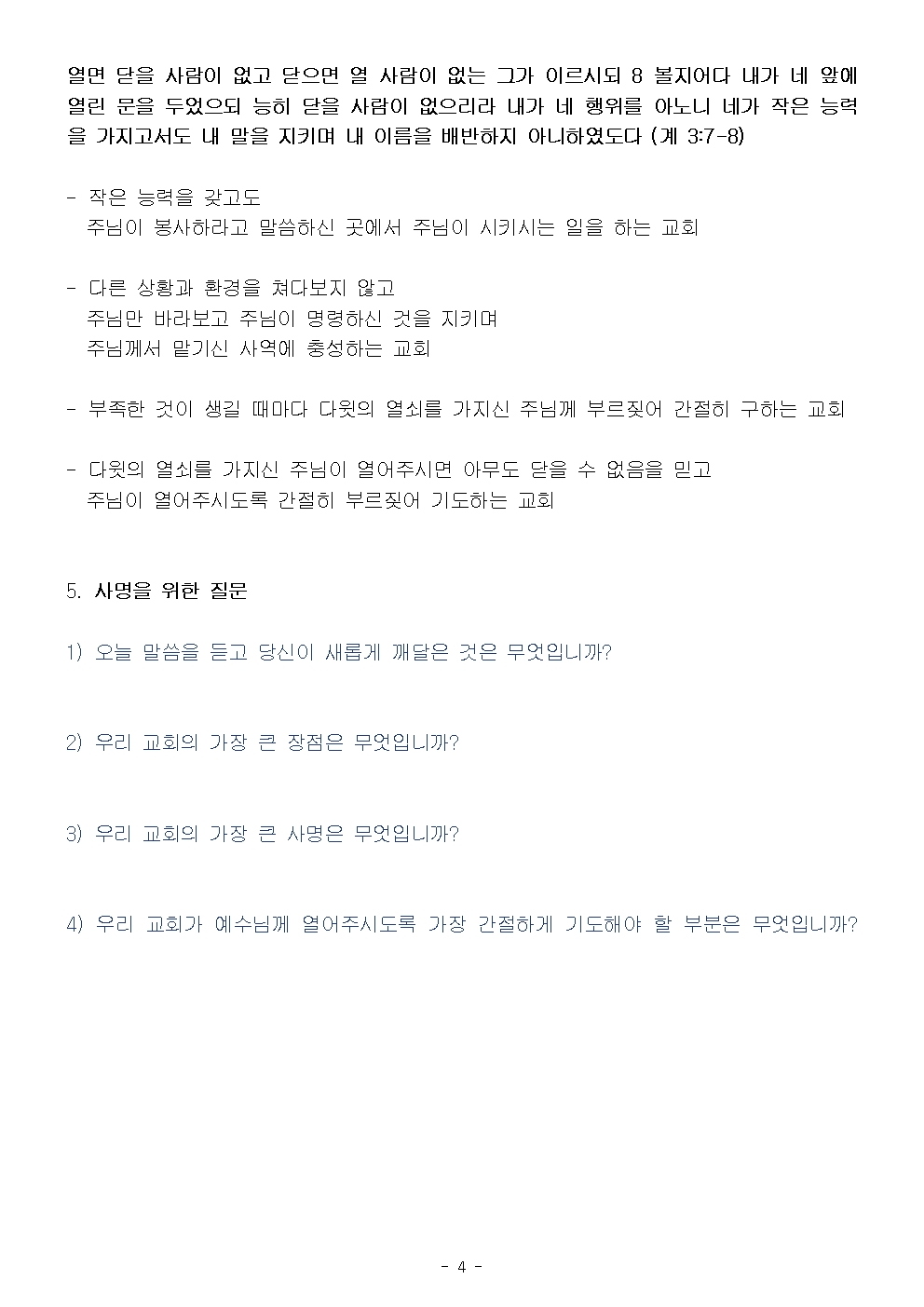 (2026 임원교육 4) 작지만 강한 교회 공동체 (설교문)