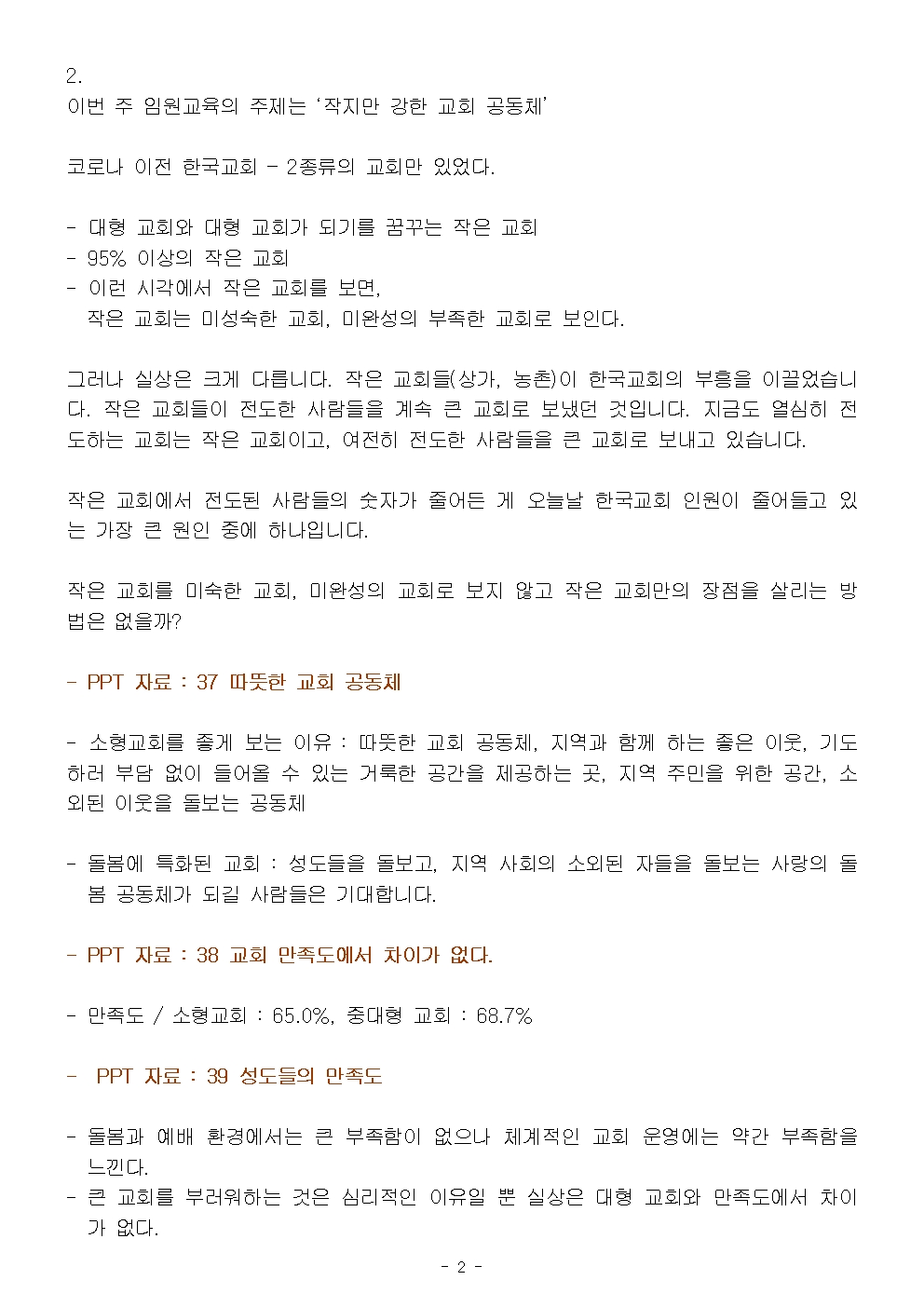 (2026 임원교육 4) 작지만 강한 교회 공동체