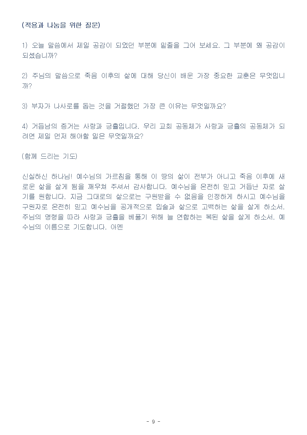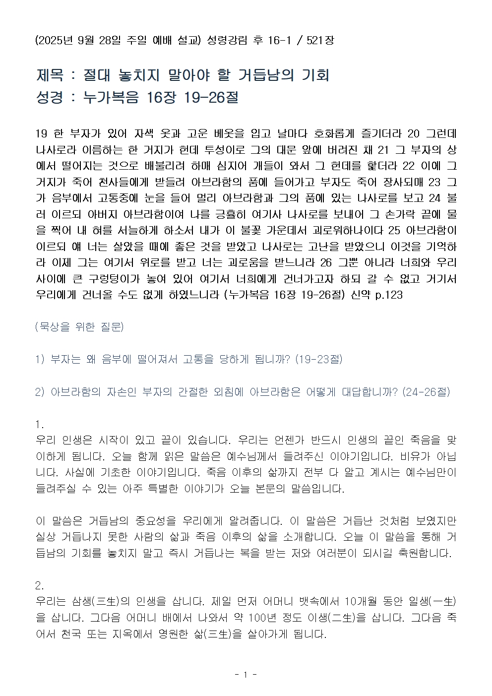 (성령강림 후 16-1) 절대 놓치지 말아야 할 거듭남의 기회 (설교문)