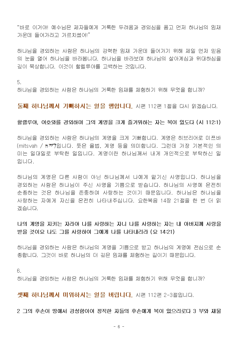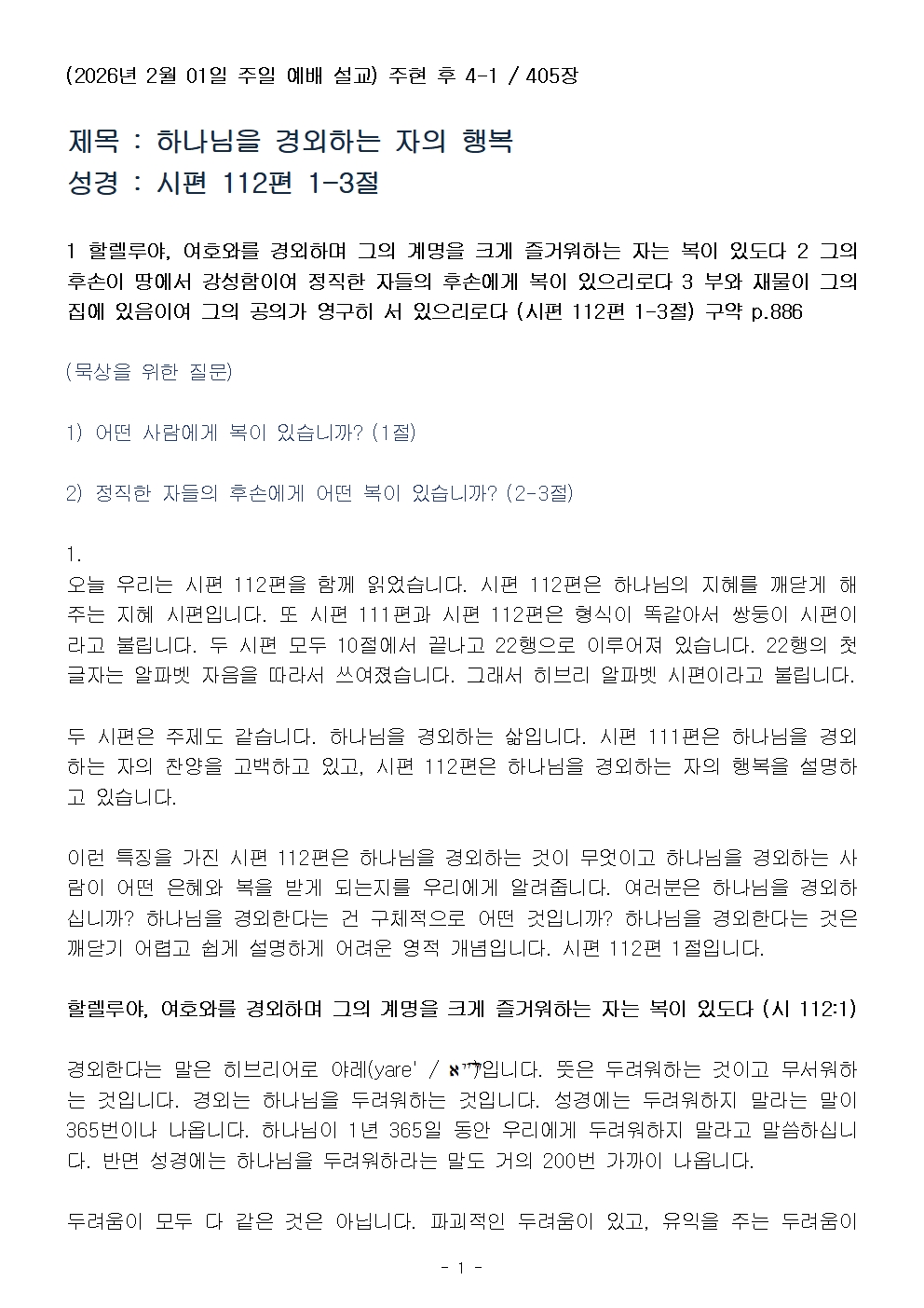 (주현 후 4-1) 하나님을 경외하는 자의 행복 (설교문)