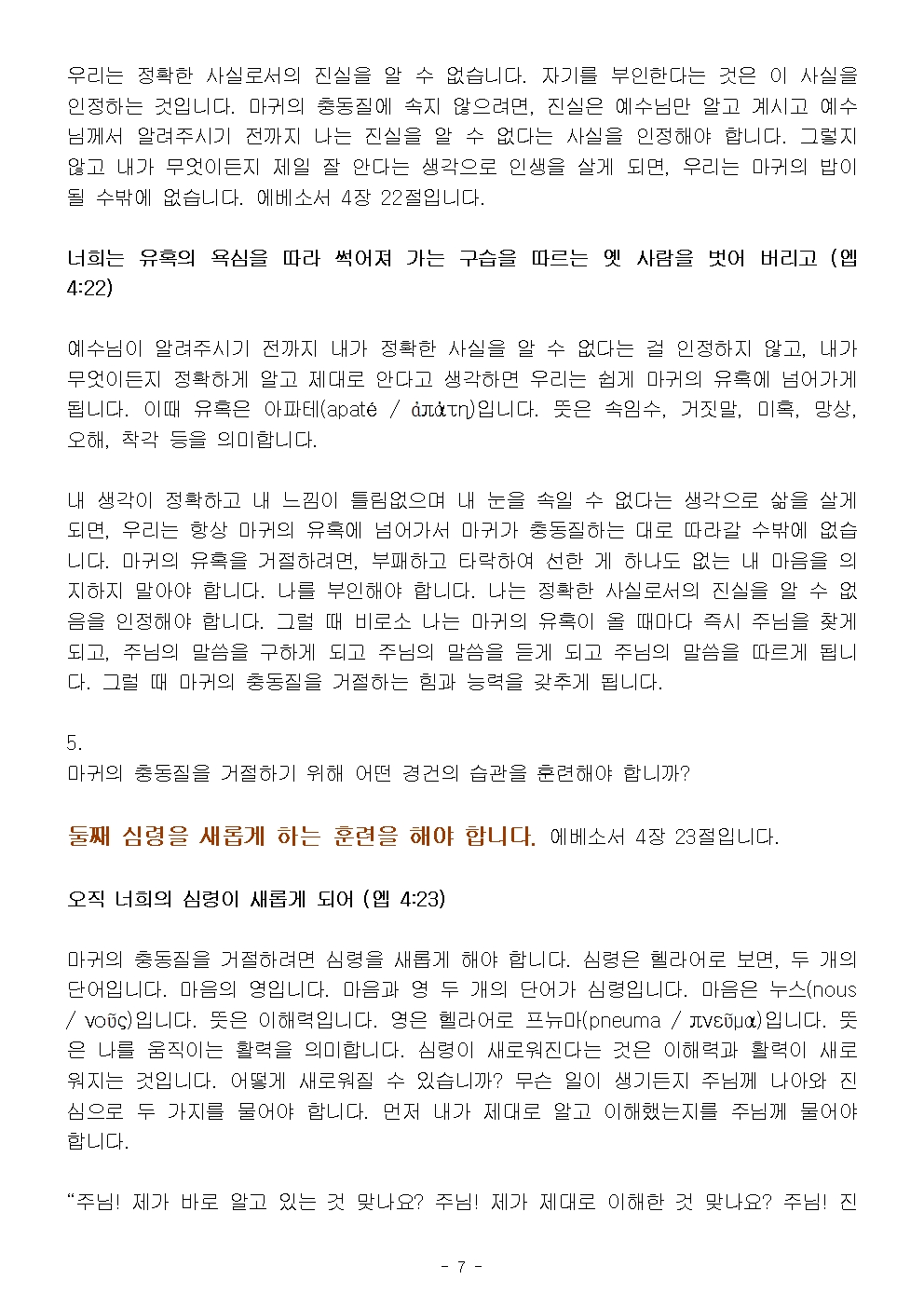 (에베소서 69) 성령을 따라 영적 훈련을 게을리 하지 않는 믿음의 사람