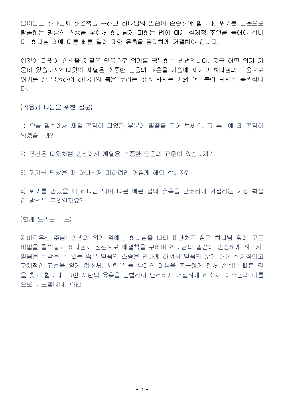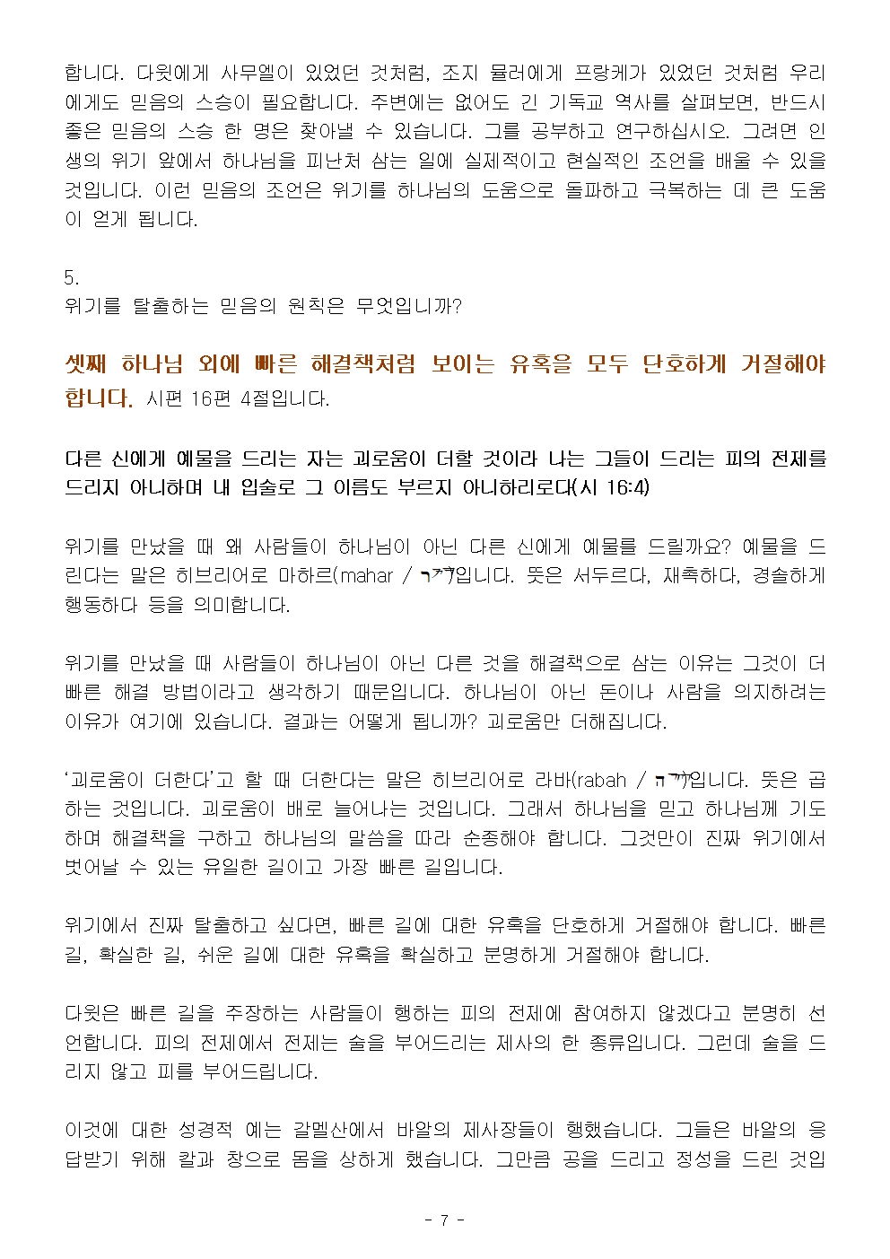 (부활절 2-1) 인생의 위기에서 탈출하는 믿음의 원칙 (설교문)